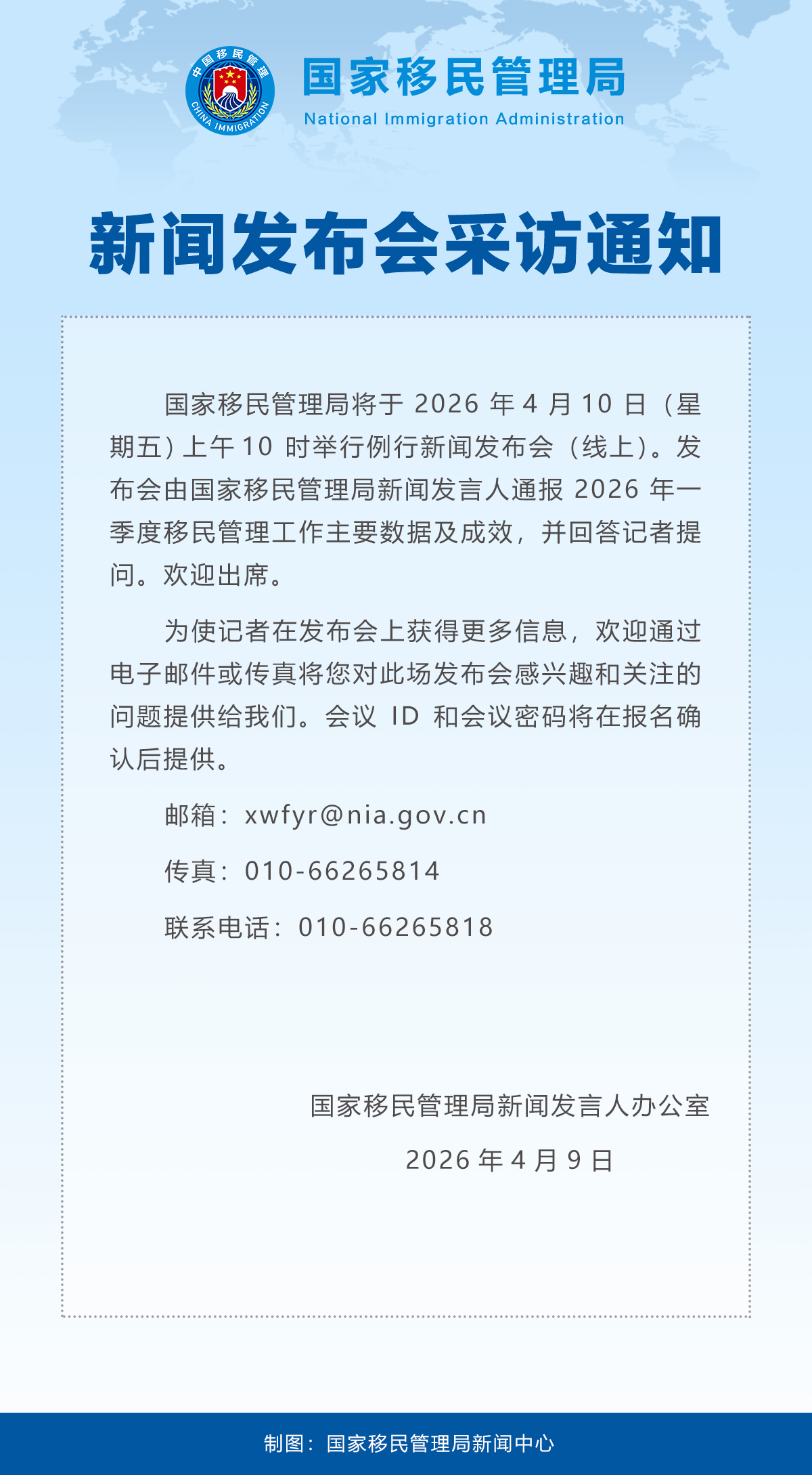 国家移民管理局例行新闻发布会采访通知